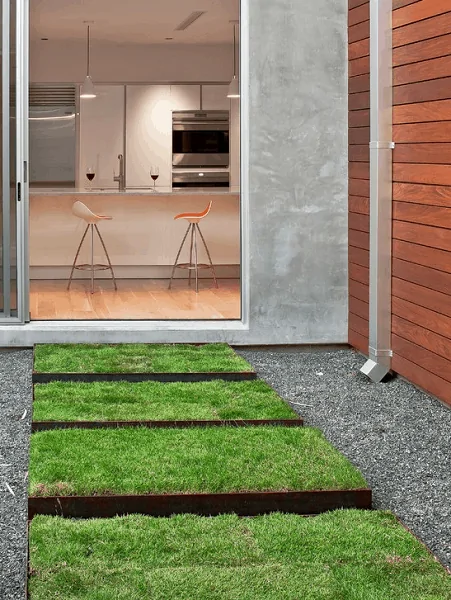 Yet another form of permeable paving, grass pavers have a unique appearance in that they will resemble the surrounding lawn or landscape. Grass-paved patios and driveways are formed by filling open cells with dirt and then planting the cells with grass seed. Grass pavers are ideal for residential driveways because they can withstand heavy loads.